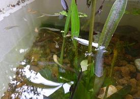 そうして、ゆっくり30分ほどかけて、水を入れてからプランター水にめだかを放しました。